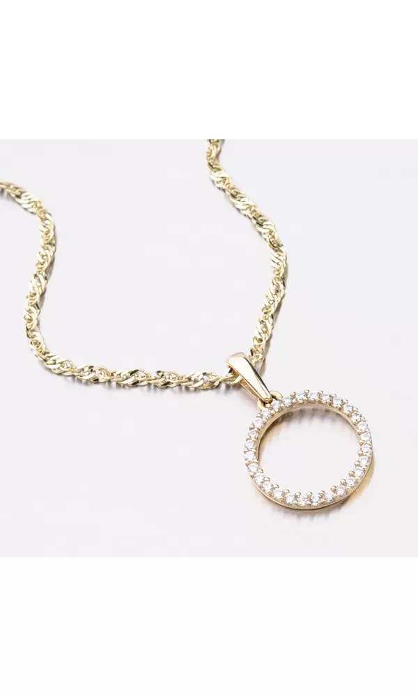 Elegantný prívesok v okrúhlom tvare vám dokonale ozdobí dekolt. Jeho dizajn nie je okázalý a tak prívesok môžete nosiť každý deň. Prívesok zvýrazňujú zirkóny v briliantovom bruse, ktoré dokonale odrážajú svetlo. Zadná strana je navrhnutá tak, aby prívesok dokonale priľnul k dekoltu a neotáčal sa.