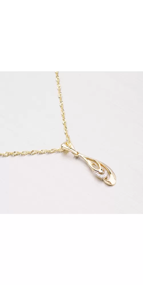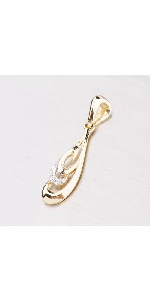 Módny prívesok vysadený blýskavými drobnými zirkónmi Vám pristane! Vyrobený je zo žltého štrnásťkarátového zlata 585/1000 v lesklej povrchovej úprave.