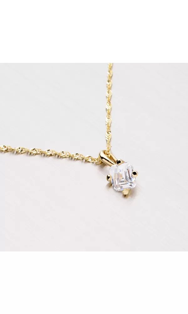 Elegantný zlatý prívesok osadený žiarivým zirkónom v tvare kosoštvorca Vám zaručene pristane! Vyrobený je zo žltého štrnásťkarátového zlata 585/1000 v lesklej povrchovej úprave.