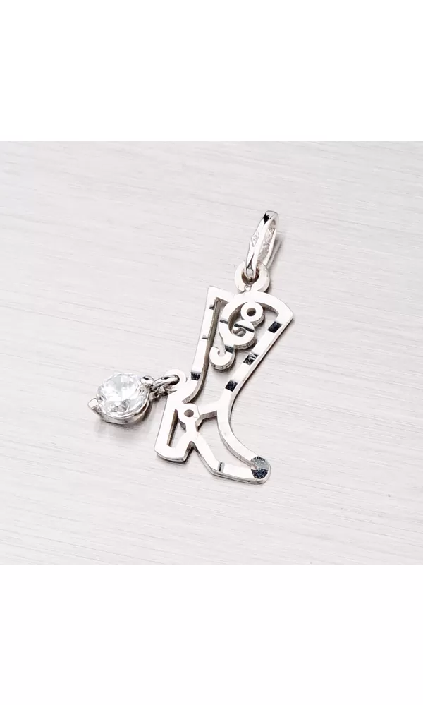 Originálny  prívesok v tvare vysokej topánky je vyrobený z bieleho štrnásťkarátového zlata 585/1000 v lesklej povrchovej úprave. Prívesok je zdobený jedným žiarivým zirkónom a gravírovaním, ktoré dodáva prívesku zaujímavé odlesky.