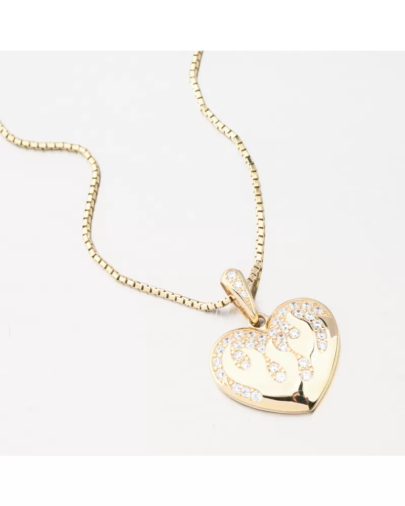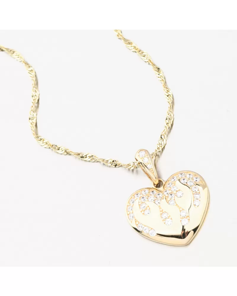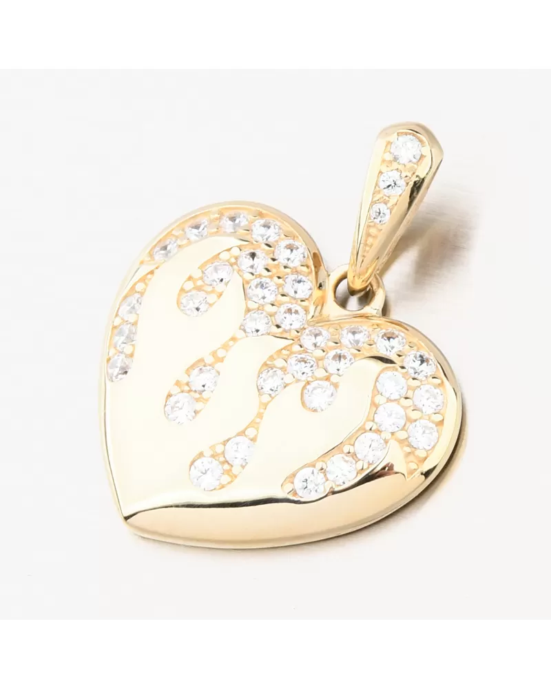 Krásny prívesok v tvare srdca s bielymi zirkónmi je vyrobený zo žltého štrnásťkarátového zlata 585/1000. Zlatý prívesok je vyrobený v lesklej povrchovej úprave. Zirkóny sú neobvykle vsadené aj na očku prívesku. Prívesok je precízne spracovaný pre najväčšie potešenie. Tento šperk bol skontrolovaný puncovým úradom, ktorý overil jeho kvalitu a označil štátnym puncom pre danú rýdzosť.