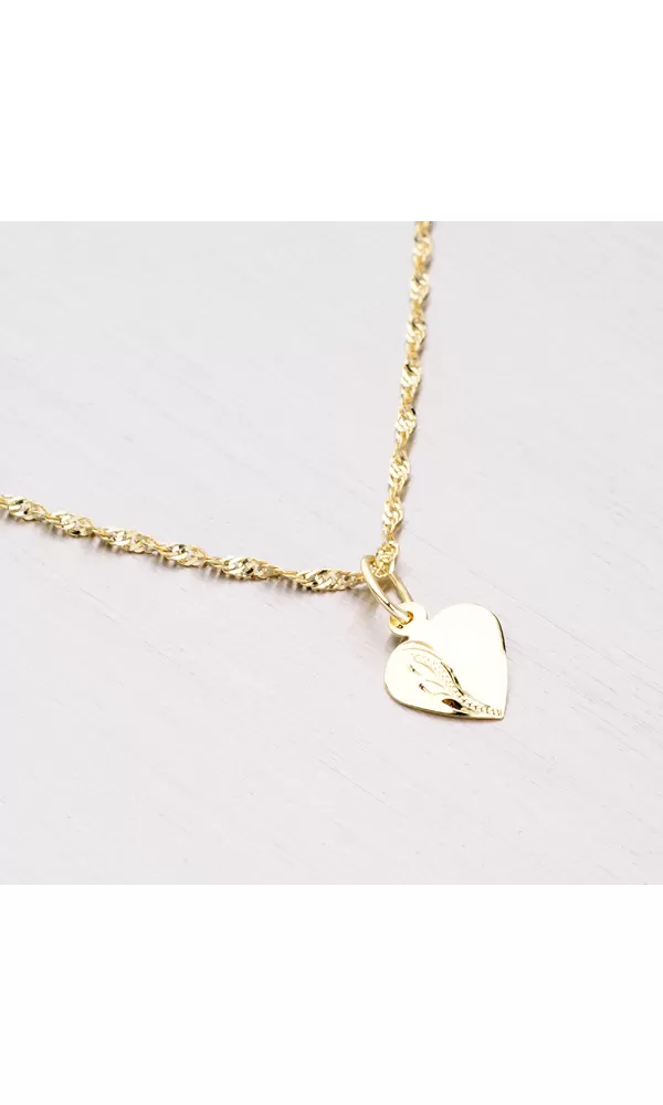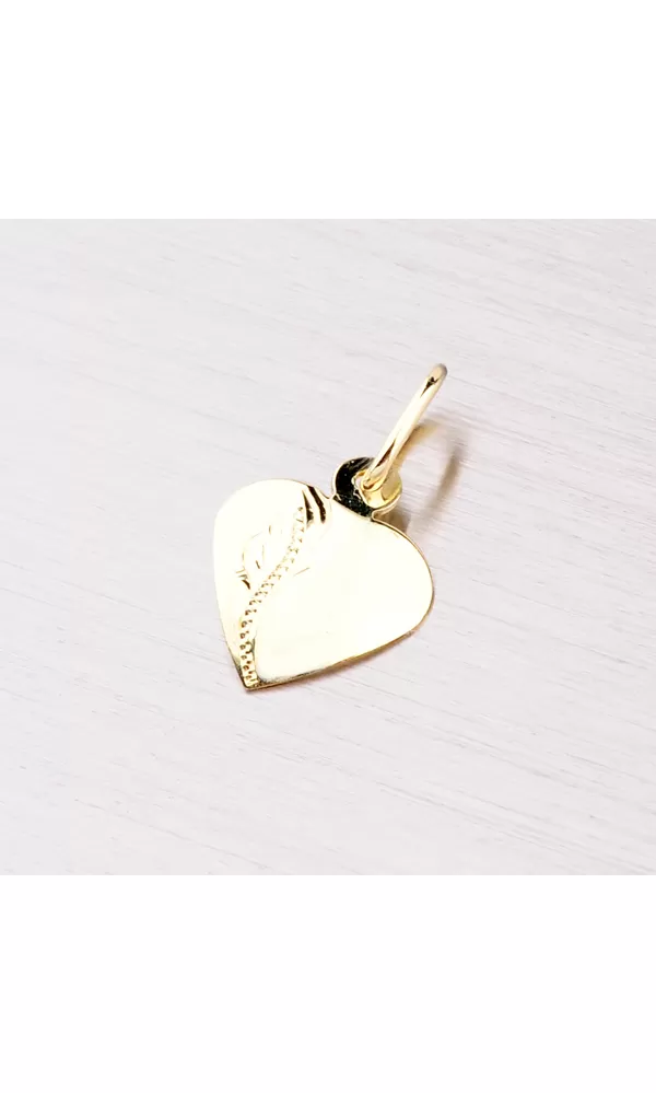 Krásne zlaté gravírované srdce je vyrobené zo štrnásťkarátového žltého zlata 585/1000. Srdiečko je celé v lesklej povrchovej úprave a zdobené je jemným gravírovaním. Potešte drahú polovičku týmto roztomilým príveskom. Zaručene budete mať úspech.