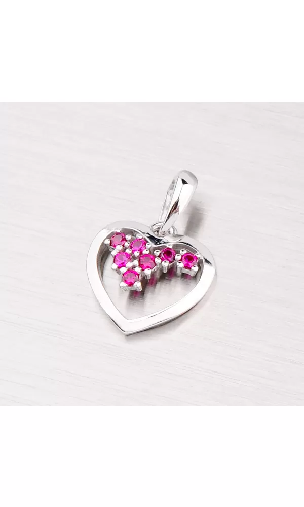 Krásny prívesok srdca so zirkónmi červenej farby je vyrobený z bieleho štrnásťkarátového zlata 585/1000 v lesklej povrchovej úprave. Potešte svoju drahú polovičku a daruje jej srdce ako symbol vašej lásky. Tento prívesok so zaujímavým umiestnením zirkónov nadchne nielen vás ale aj vašich blízkych. Zlatý prívesok sa bude skvele vynímať v dekolte obdarovanej partnerky.