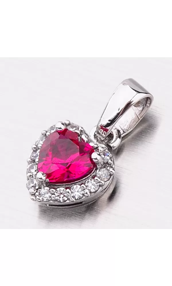 Zlatý prívesok v romantickom dizajne uchváti každú ženu. Prívesok je v tvare srdca a nádherne sa leskne vďaka zirkónom, ktoré prívesok zdobia. Urostred prívesku je vsadený syntetický rubín brúsený do tvaru srdca a uchytený je tromi krapnami. Okolo syntetického rubínu sú vsadené zirkóny v briliantovom bruse. Tento brús zaisťuje zirkónom brilanciu pravých diamantov.