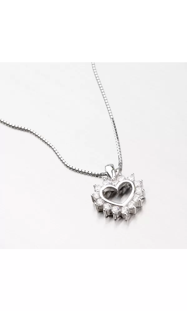 Luxusný šperk v tvare srdca je vyrobený z bieleho štrnástich-karátového zlata 585/1000 v lesklej povrchovej úprave. srdce jej vyrazí dych.