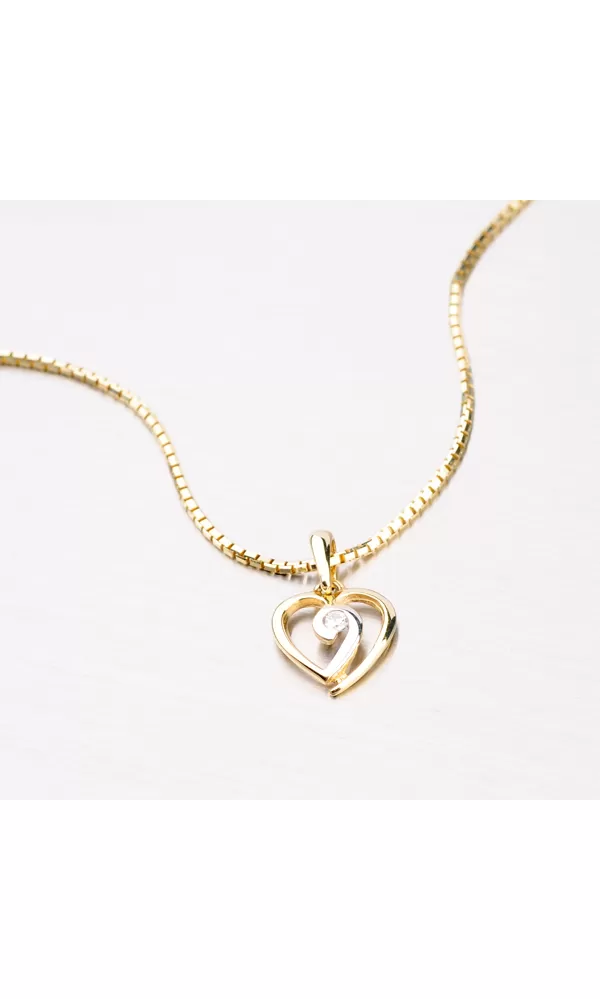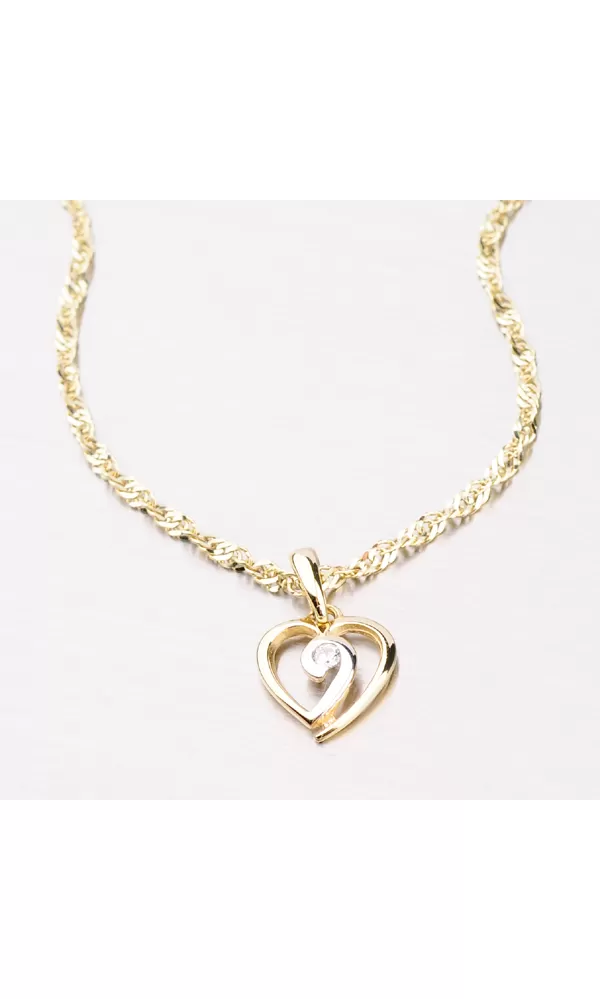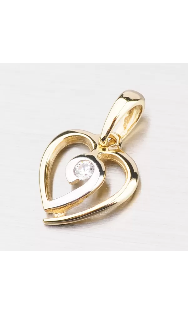 Krásny žiarivý prívesok vyrobený zo zlata s čistotou 585/1000 v kombinácii bielej a žltej farby. Srdce je vybavené bielym zirkónom v brilantnom strihu v strede. Prívesok má lesklý povrch a krásne zdobí vaše dekolt.