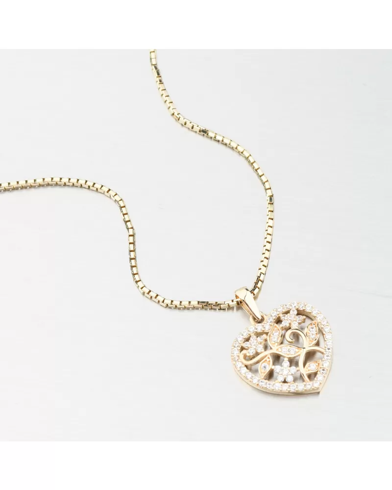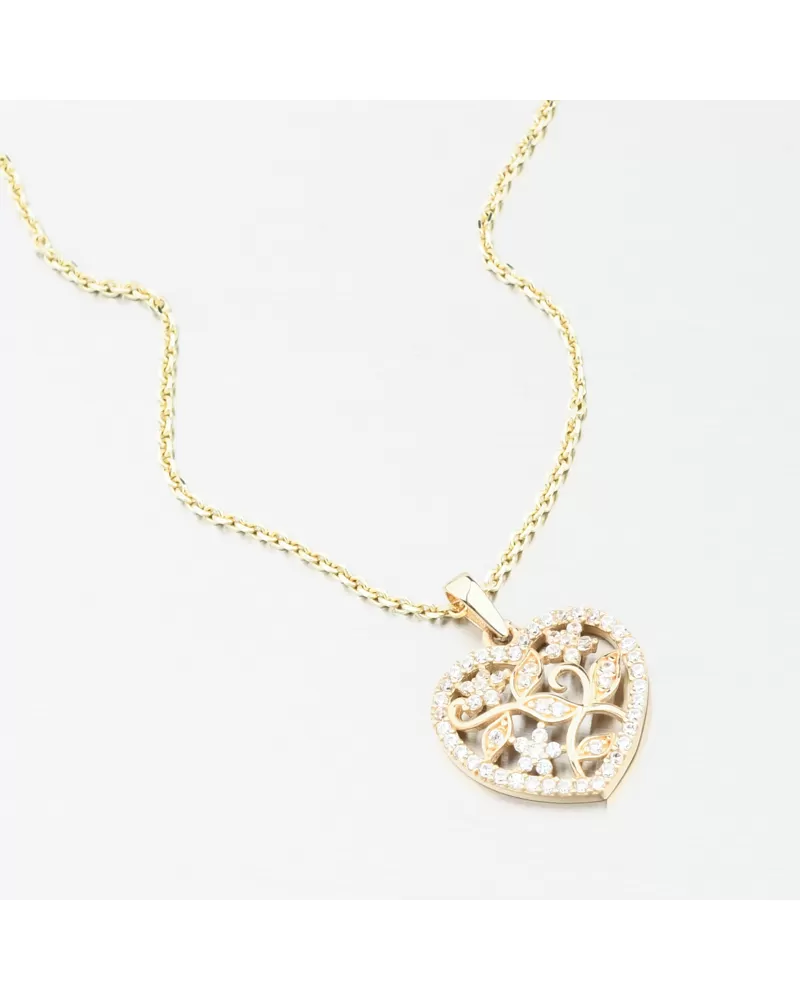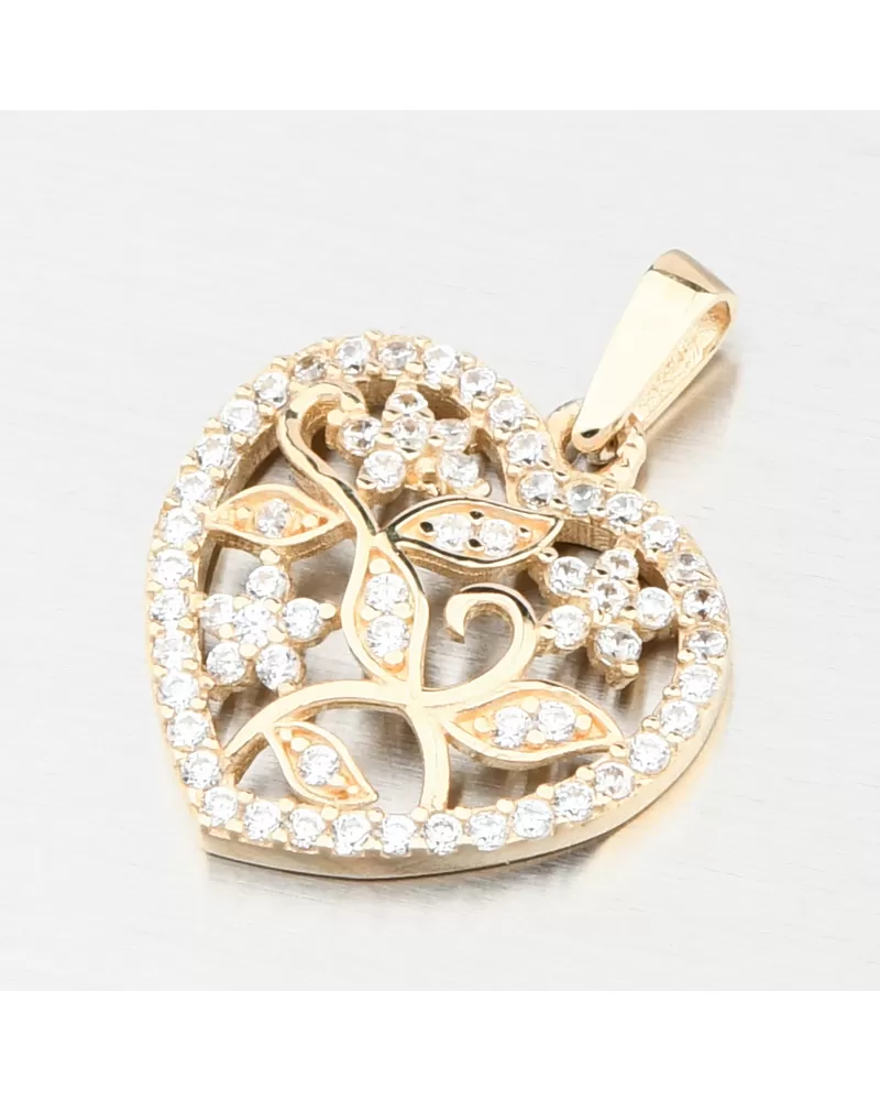 Tento krásny zlatý prívesok v tvare srdca očarí na prvý pohľad svojím prepracovaným dizajnom. Jemný kvetinový motív sa rozprestiera v jemnej kontúre srdca, posiateho precízne brúsenými kubickými zirkónmi, ktoré sa rozžiaria pri každom zásahu svetla. Zirkóny sú briliantového brusu, ktorý zaisťuje maximálnu brilanciu brúsených faziet, dokonale odráža svetlo a neuveriteľne svieti z každého pohľadu.