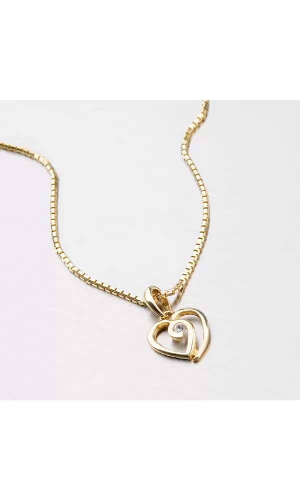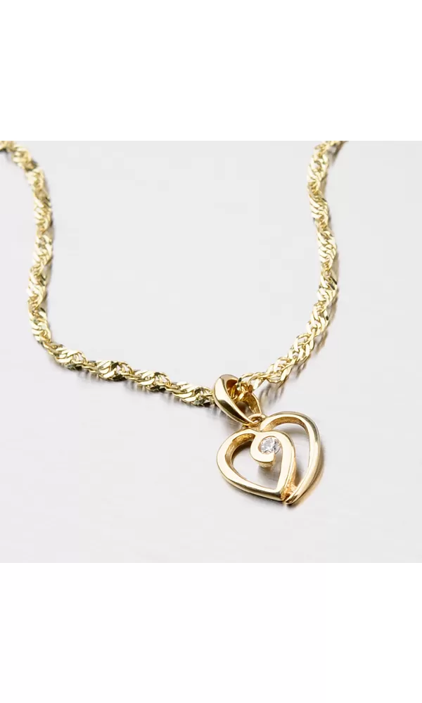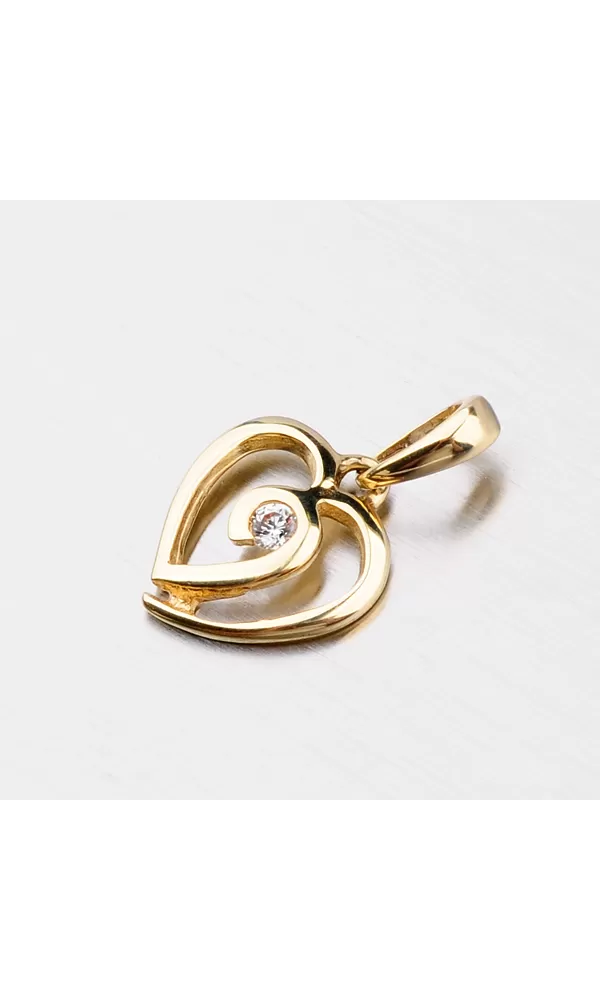 Krásny žiarivý prívesok vyrobený zo zlata s čistotou 585/1000 v žltej farbe. Srdce je vybavené bielym zirkónom v brilantnom strihu v strede. Prívesok má lesklý povrch a krásne zdobí vaše dekolt.
