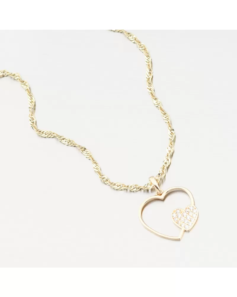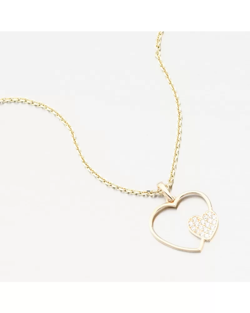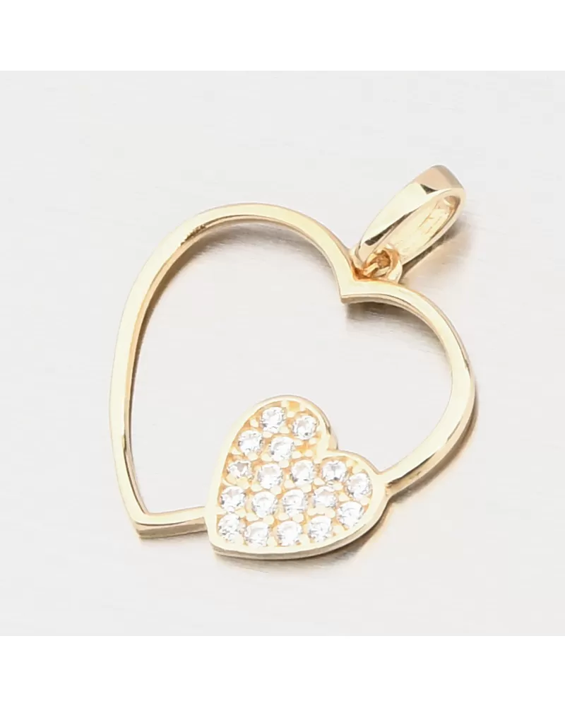 Tento jemný zlatý prívesok v tvare srdca predstavuje dokonalú kombináciu jemnosti a luxusu. Lesk prívesku krásne dopĺňa trblietanie drobných zirkónov, ktoré zdobia malé srdiečko osadené na okraji hlavného srdiečka. Zirkóny sú briliantovo vybrúsené, čo zaisťuje maximálnu brilanciu brúsených faziet, dokonale odráža svetlo a neuveriteľne sa leskne z každého pohľadu. Dizajn otvoreného srdca pôsobí vzdušne a romanticky - ideálny darček na vyjadrenie lásky či náklonnosti.