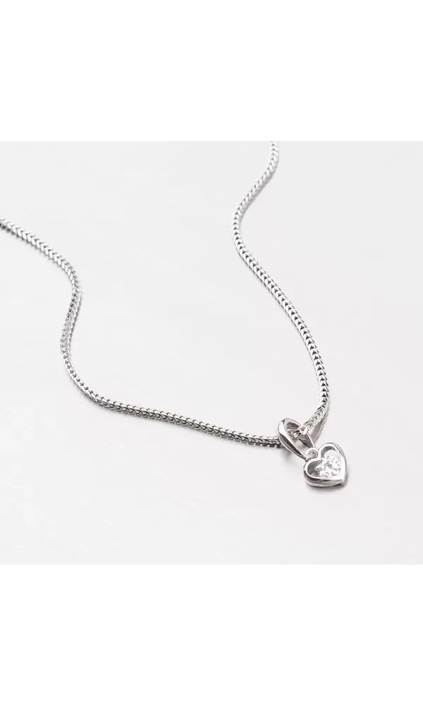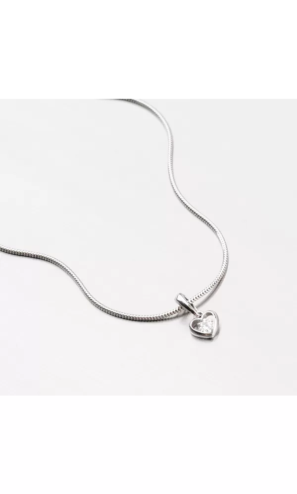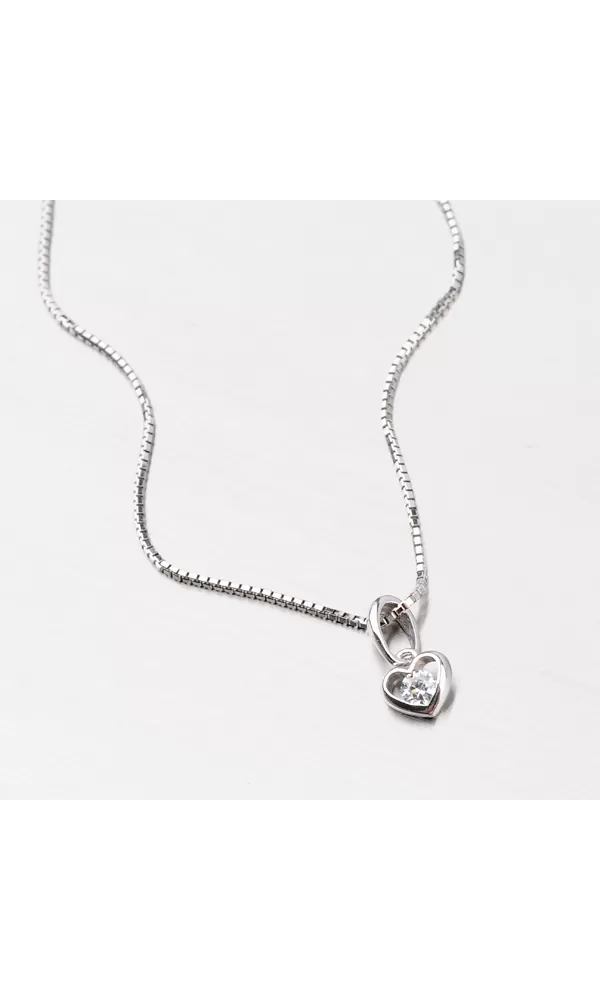 Drobné srdiečko s jedným bielym zirkónom je vyrobené z bieleho štrnástich karátového zlata s rýdzosťou 585/1000. Zlatý prívesok je vyrobený v lesklej povrchovej úprave.
