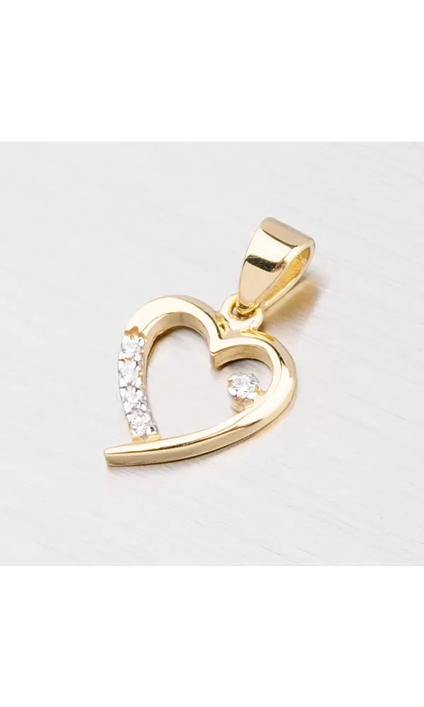 Zlatý prívesok v tvare srdca so zirkónmi 43-2494