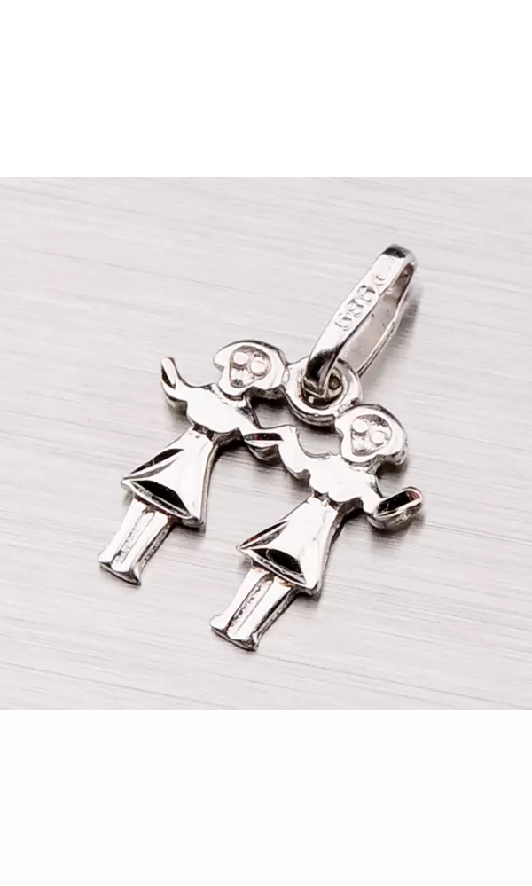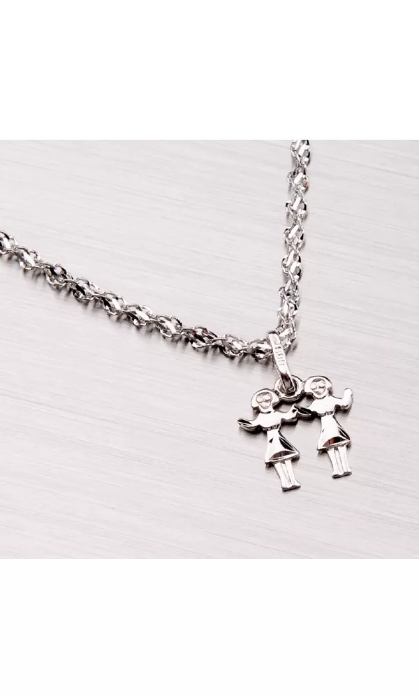 Prívesok v znamení Blížencov vyrobený z bieleho štrnásťtikarátového zlata 585/1000 v lesklej povrchovej úprave.