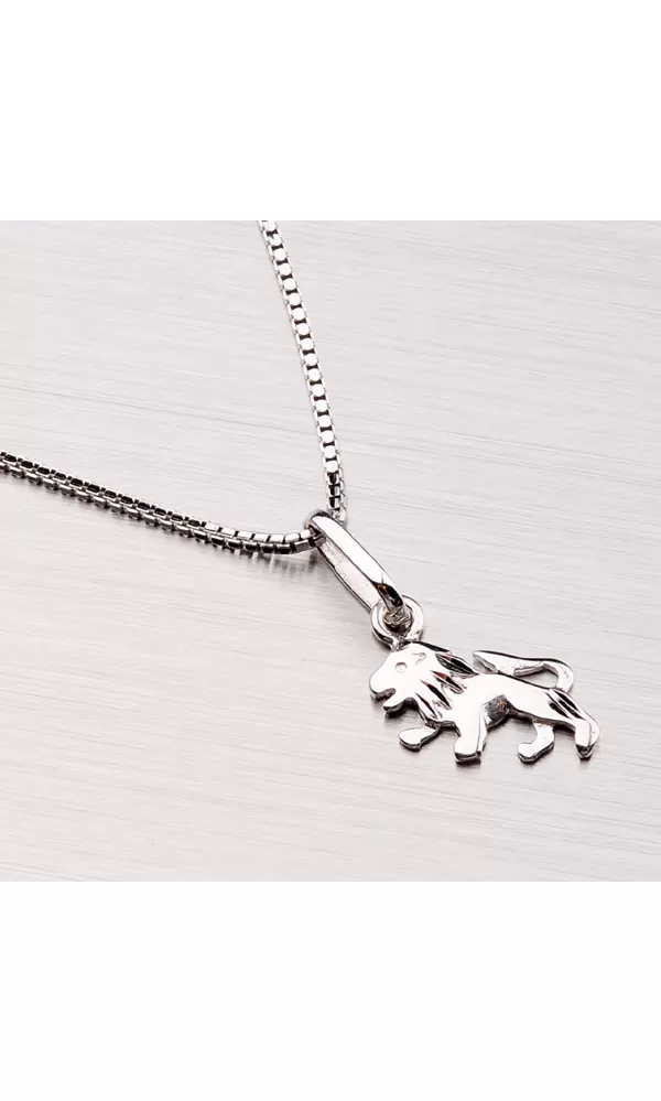 Prívesok v znamení Ľav vyrobený z bieleho štrnásťkarátového zlata 585/00 v lesklej povrchovej úprave.