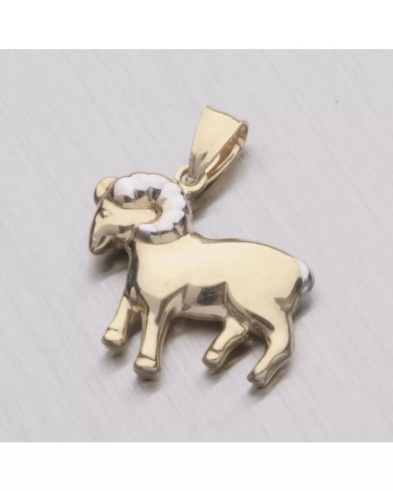 Prívesok - znamenie Berana vyrobený v kombinácii žltého a bieleho štrnásťtikarátového zlata 585/1000 v lesklej povrchovej úprave.
