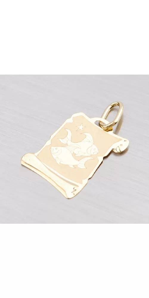 Prívesok v tvare pergamenu s hviezdnym znamením -Ryby zo žltého štrnásťkarátového zlata - 585/1000v kombinácii lesklej a matnej povrchovej úpravy. … Celý popis