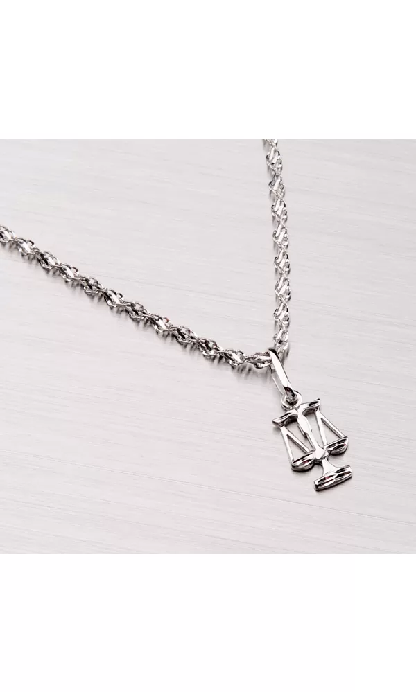 Prívesok v znamení Vah vyrobený z bieleho štrnásťkarátového zlata 585/1000 v lesklej povrchovej úprave.