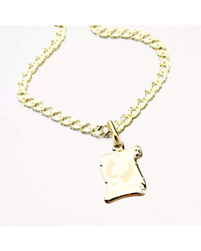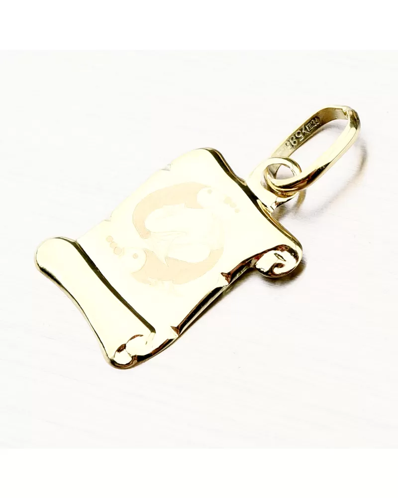 Zlatá doštička s motívom zverokruhu - Ryby (19.2.-20.3.) - je vyrobená zo žltého zlata rýdzosti 585/1000. Doštička je v tvare starodávneho pergamenu v lesklom prevedení a znamenie je na doštičku detailne vypískované a pôsobí matným dojmom.