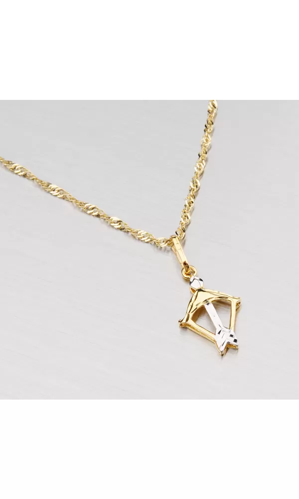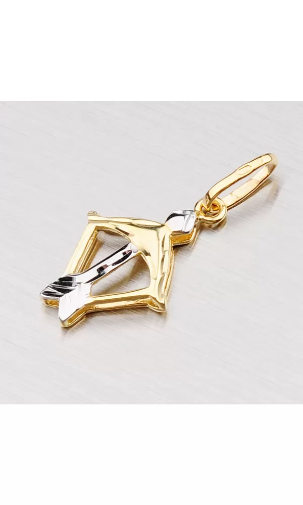 Prívesok v znamení Strelca je vyrobený v kombinácii žltého a bieleho štrnásťtikarátového zlata 585/1000 v lesklej povrchovej úprave.