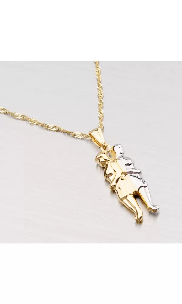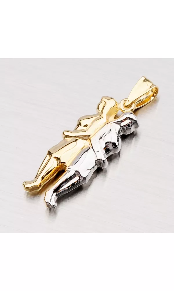 Prívesok - znamenie Blíženci vyrobený v kombinácii žltého a bieleho štrnáctikarátového zlata 585/1000 v lesklej povrchovej úprave.