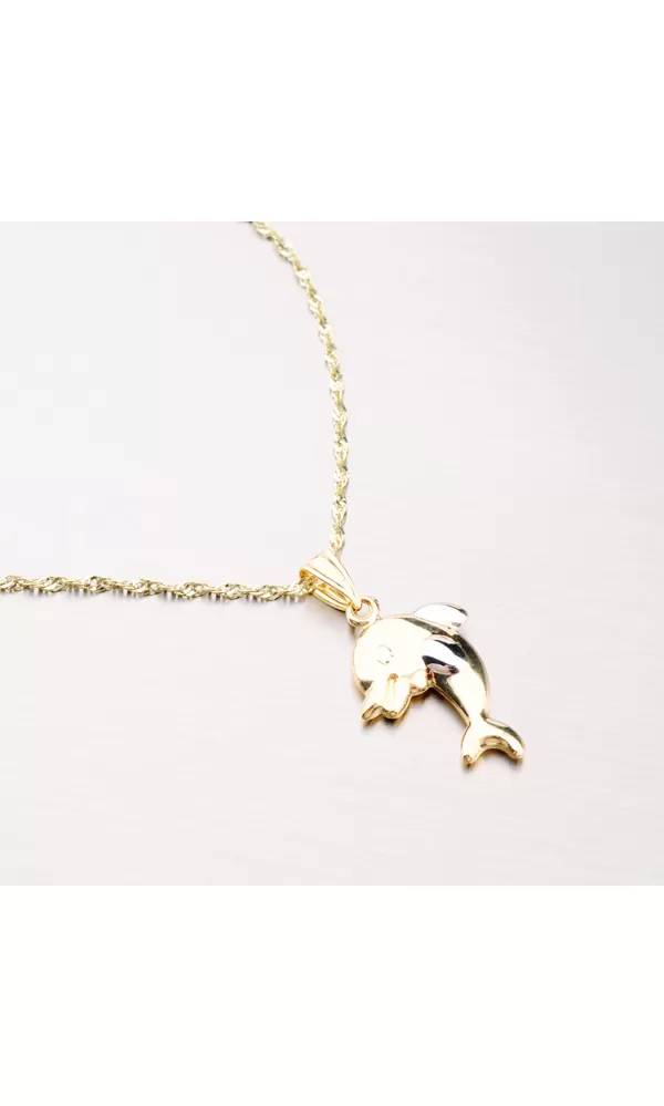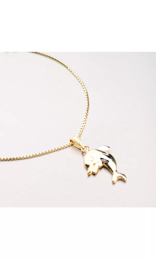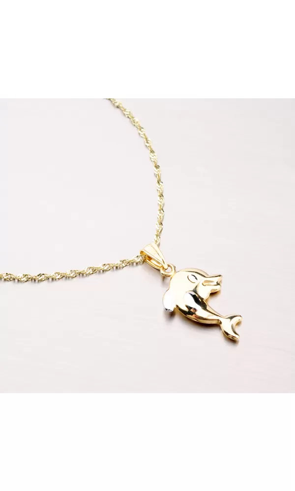 Prívesok v tvare delfína poteší mužov, ženy aj deti. Prívesok je detailne spracovaný a zdobený bielou farbou zlata. Prívesok je vyrobený zo žltého štrnásťkarátového zlata 585/1000 v lesklej povrchovej úprave. Prívesok je vhodné navliecť na retiazku alebo náramok. Vždy bude vzbudzovať pozornosť.