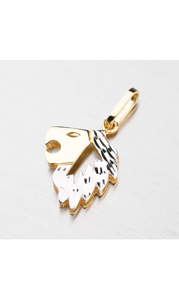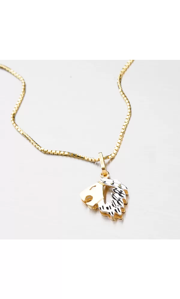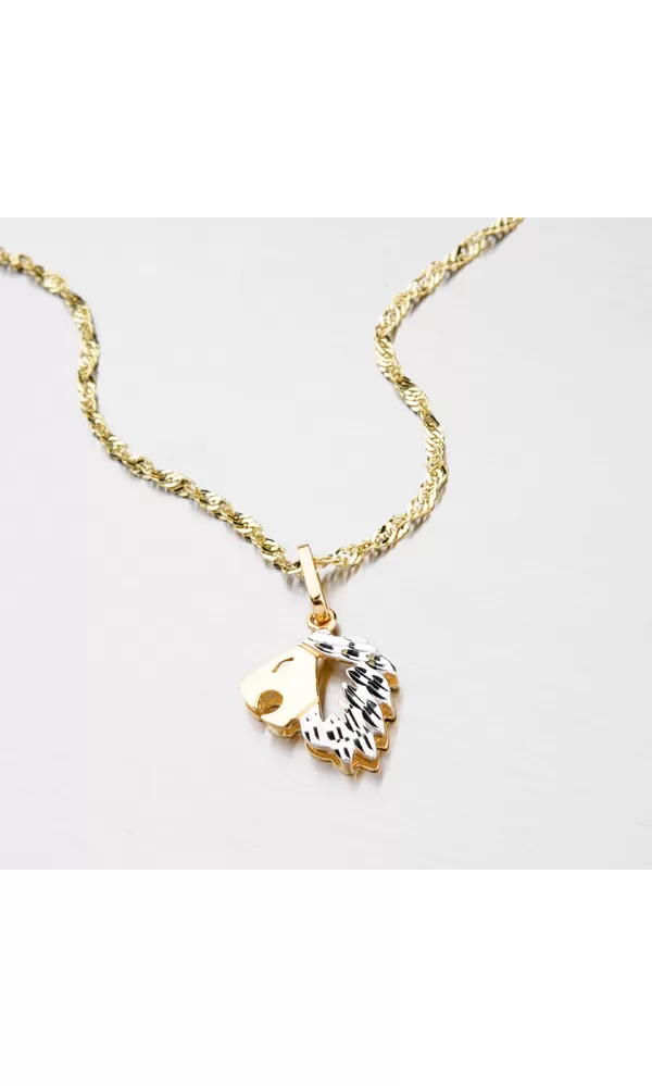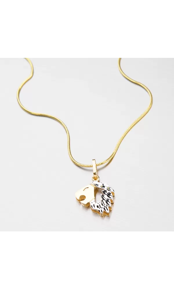 Prívesok v znamení Leva vyrobený v kombinácii žltého a bieleho štrnásťtikarátového zlata 585/1000 v lesklej povrchovej úprave.