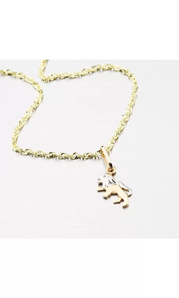 Prívesok v znamení Ľav vyrobený zo štrnásťkarátového zlata v kombinácii žltej a bielej farby Povrchová úprava je v kombinácii lesku a matu. Celý popis