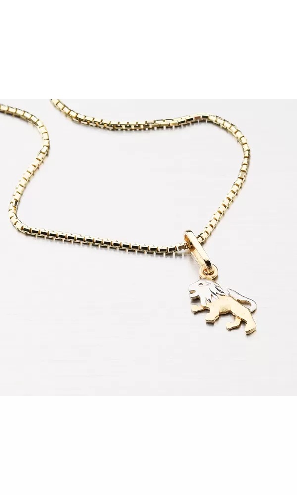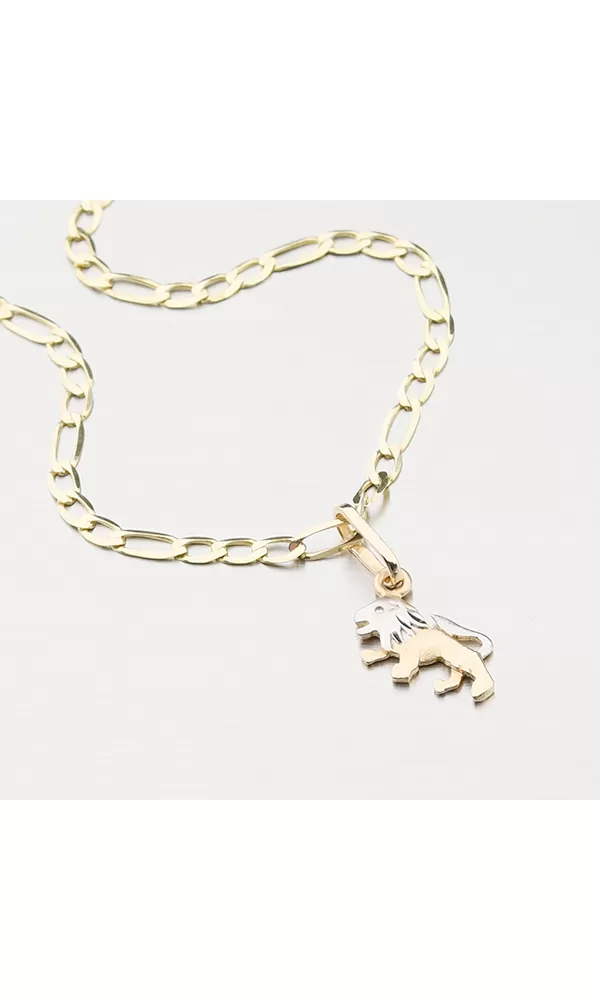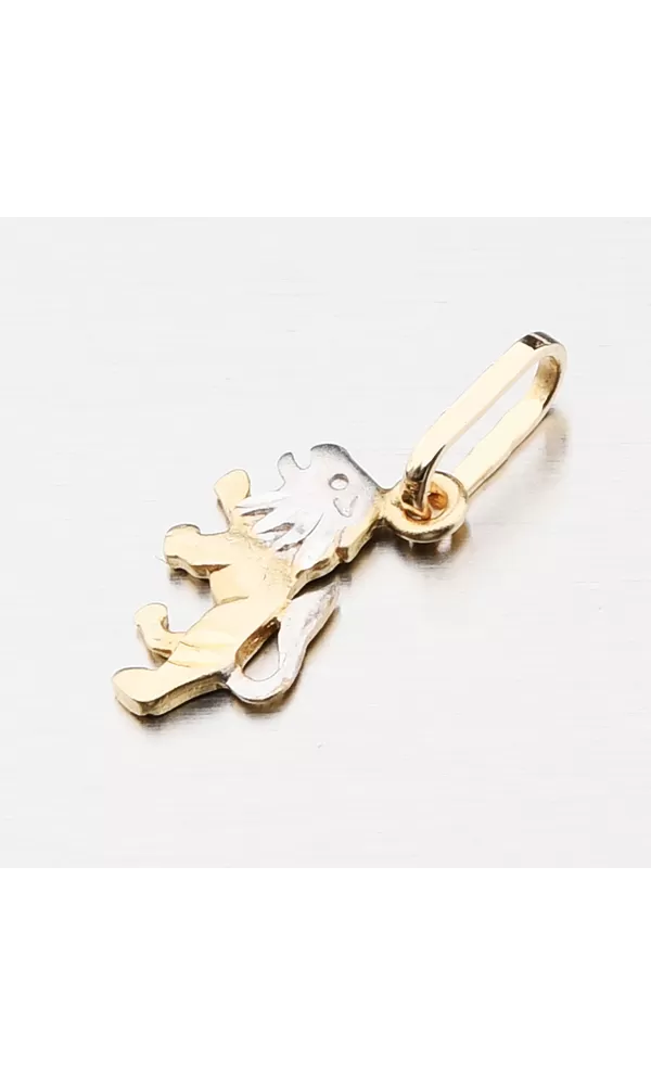 Prívesok v znamení Ľav vyrobený zo štrnásťkarátového zlata v kombinácii žltej a bielej farby Povrchová úprava je v kombinácii lesku a matu.