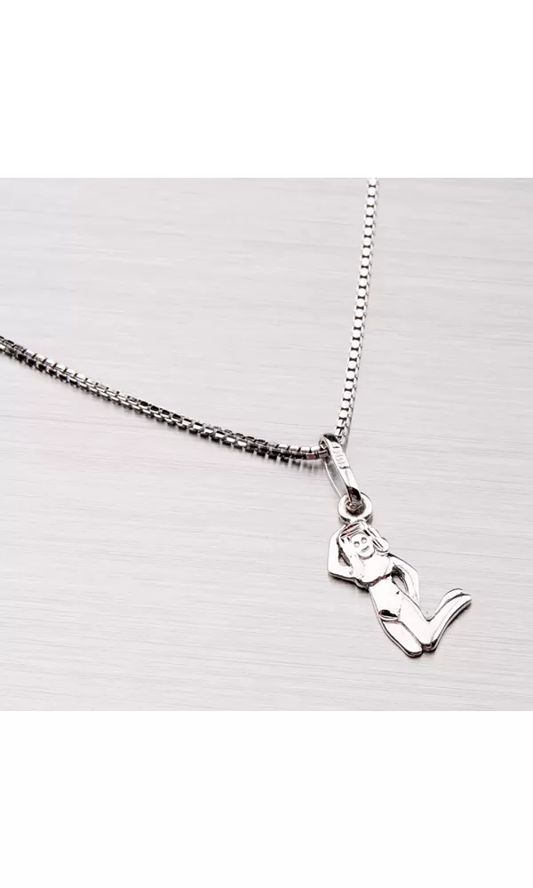 Prívesok v znamení Panna vyrobený z bieleho štrnásťkarátového zlata 585/1000 v lesklej povrchovej úprave.