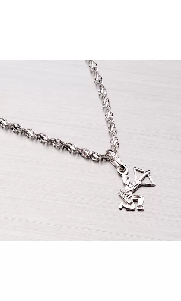 Prívesok v znamení Strelca vyrobený z bieleho štrnásťkarátového zlata 585/1000 v lesklej povrchovej úprave.