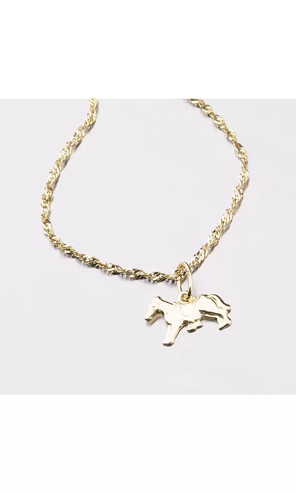 Decentná doštička v tvare koňa, ktorá sa dá nosiť hneď dvojakým spôsobom. Prívesok je z jednej strany hladký, iba ako silueta koňa, z druhej strany je kôň zdobený ľahkým gravírovaním dodávajúci oči, obrys.