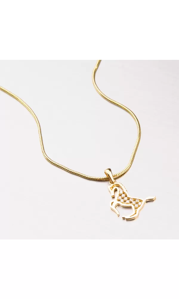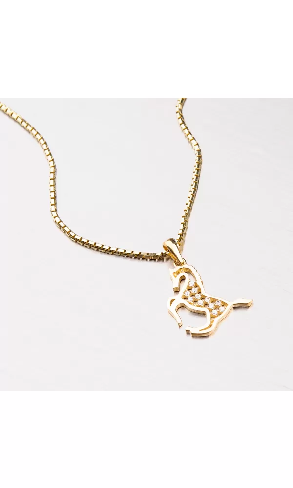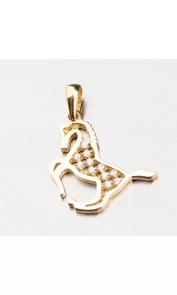 Roztomilý prívesok v tvare koňa poteší veľa dievčat i žien, pretože kone patria medzi najobľúbenejšie zvieratá. Prívesok je zdobený zirkónmi v briliantovom bruse. Výhodou tohto zlatého prívesku je jeho veľkosť, dá sa nosiť nielen na retiazke ale môžete ho použiť aj ako prívesok na náramok alebo s ním ozdobiť členok. Zlatý prívesok je vyrobený zo žltého štrnásťkarátového zlata 585/1000 v lesklej povrchovej úprave.
