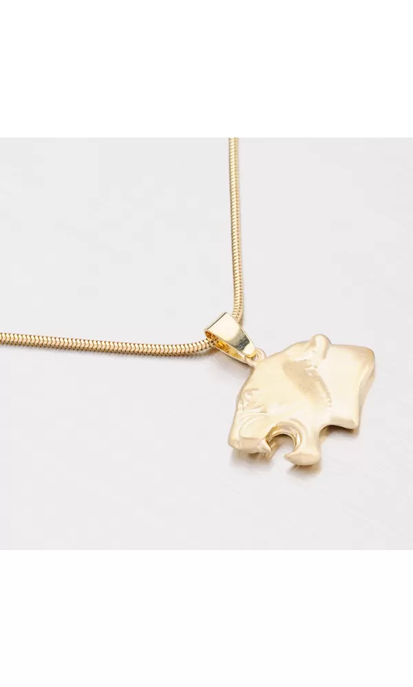 Prívesok v tvare tigra je vyrobený zo žltého štrnásťkarátového zlata 585/1000. Prívesok je z jednej strany v lesklej a z druhej strany v matnej… Celý popis
