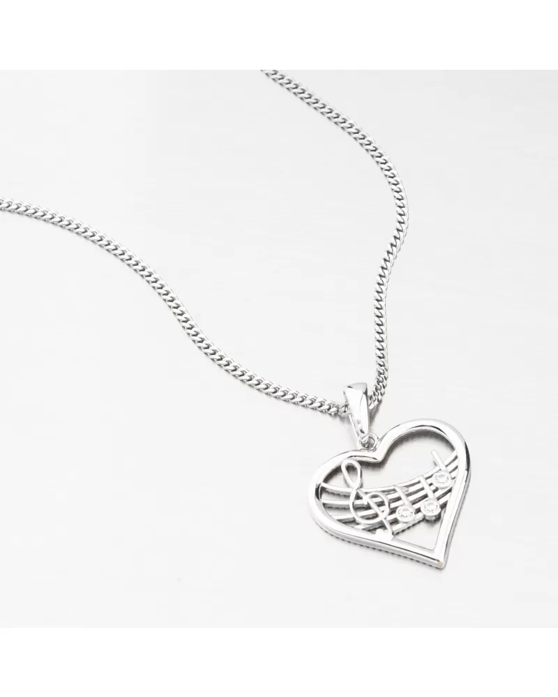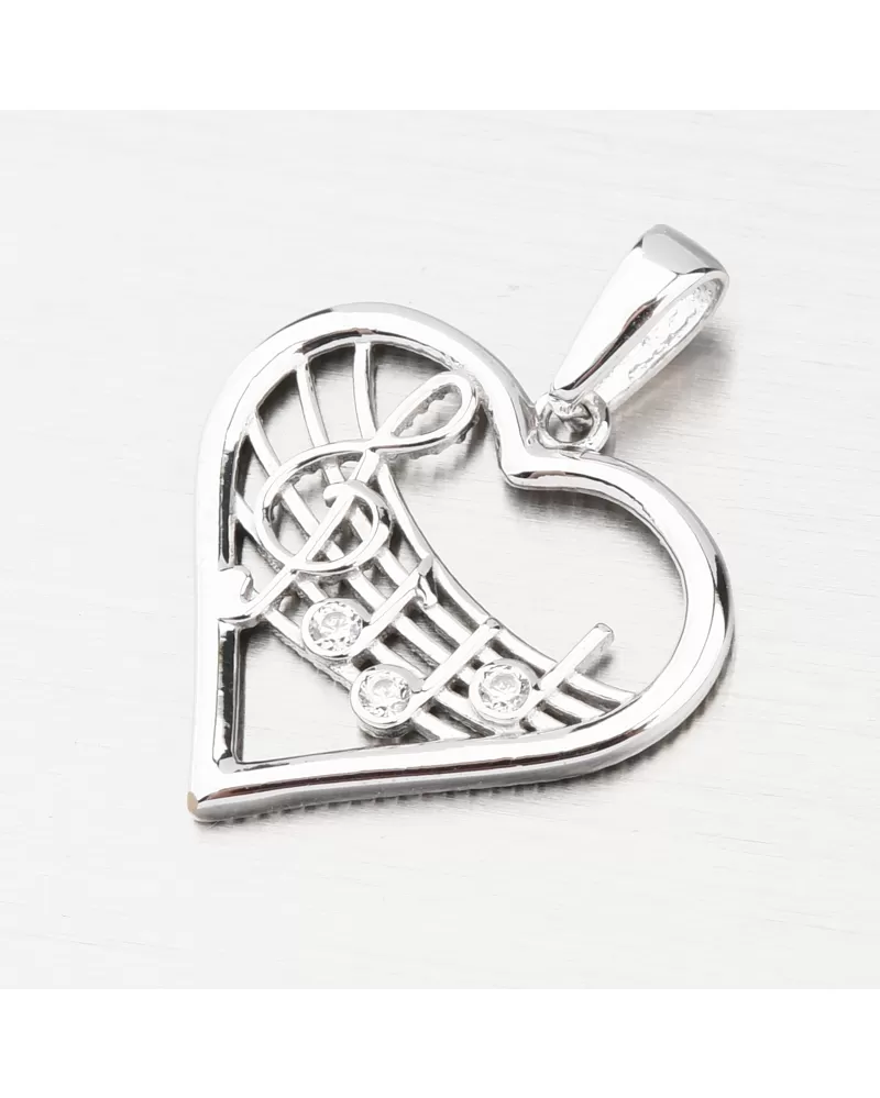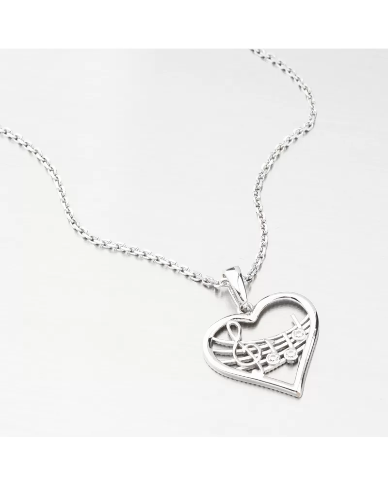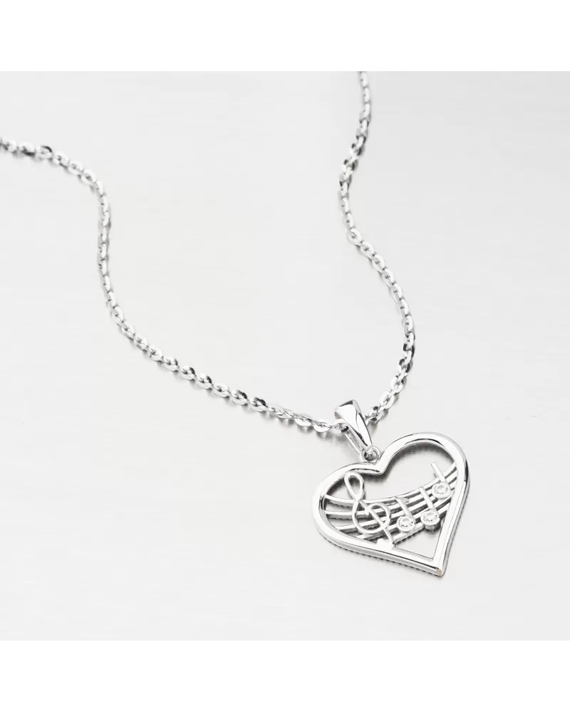 Prívesok z bieleho zlata srdca a noty GCA13-016