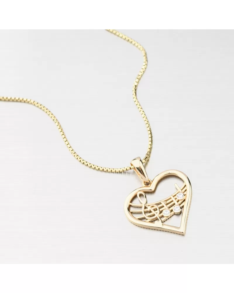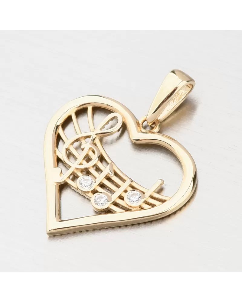 Zlatý prívesok srdca a noty GCA13-015