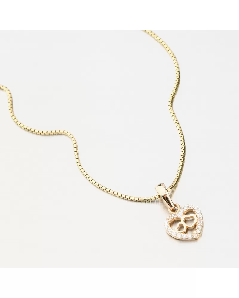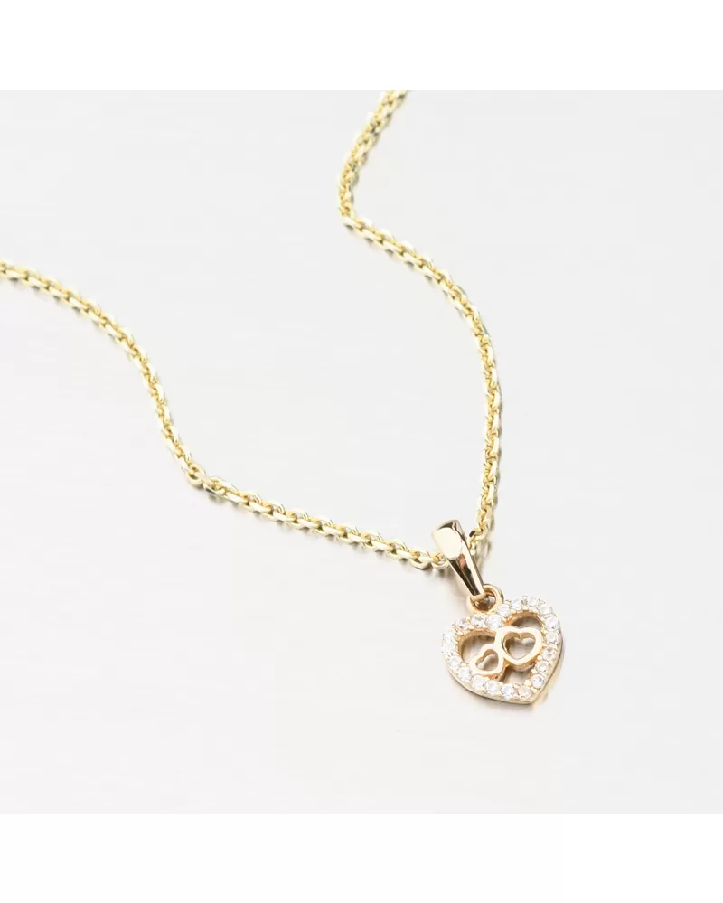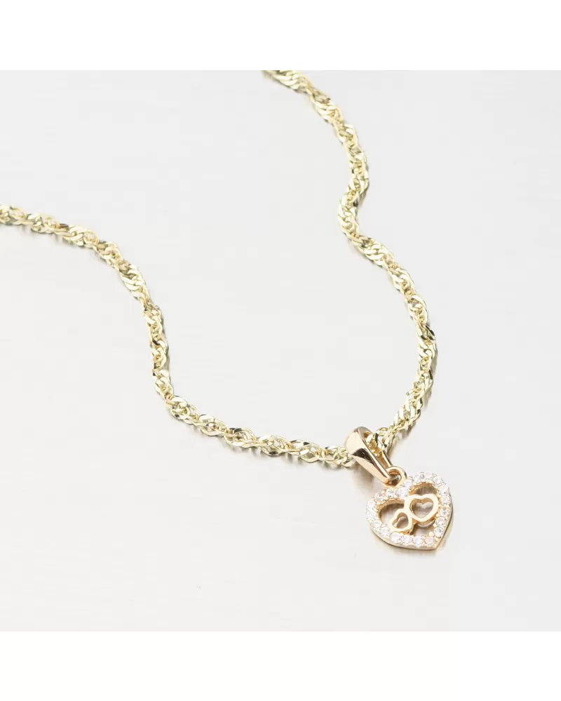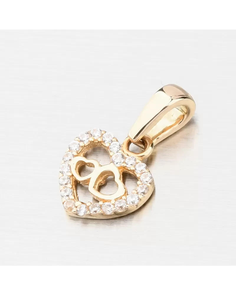 Nádherný zlatý prívesok v tvare srdca, ktoré je lemované trblietavými zirkónmi po celom obvode. Zirkóny sú v briliantovom bruse, ktorý prepožičiava zirkónom brilanciu pravých diamantov. V strede srdca sa nachádzajú ešte dve drobné srdiečka v lesku. Srdce je symbolom lásky, preto ak chcete svoju milú zaujať a vyznať jej lásku, alebo svojej blízkej osobe ukázať, ako ju máte radi a záleží vám na ňu, tento prívesok je presne to, čo hľadáte!
