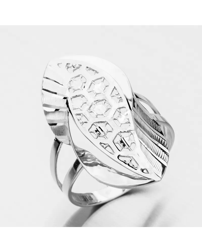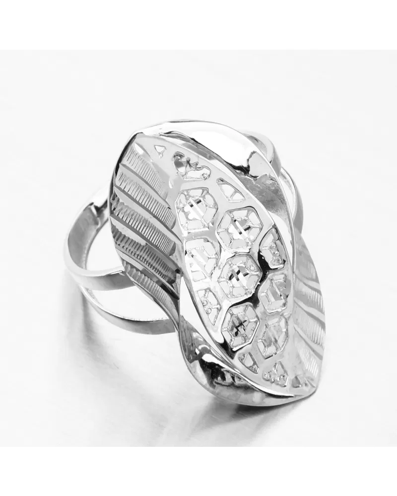 Šperk ako umelecké dielo. To vystihuje tento prsteň z bieleho zlata, ktorý predvádza veľa techník zdobenia. Vidíme precíznu prácu so zlatom, veľmi jemné gravírovanie diamantovým hrotom. Gravírovanie je za pomoci diamantového hrotu, ktorý dodáva šperku maximálny lesk a brilanciu zo všetkých uhlov. Prsteň zaberie viac miesta na Vašom prste, a tak dokonale ozdobí Vašu ruku.