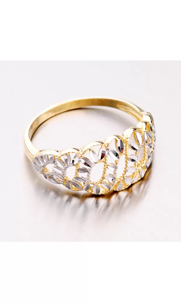 Úžasný zlatým prsteň ktorého dominantou je ozdoba s krásnym výpletom musíte mať. Zlatý prsteň je zdobený bielou farbou zlata, ktorá je zvýraznená gravírovaním. Gravírovanie je prevedené diamantovým rycím hrotom, ktorý zaisťuje najvyšší možný lesk gravírovaných facet. Prsteň pôsobí na prste naozaj skvostne a dokonale ozdobí vašu ruku.