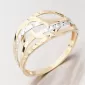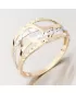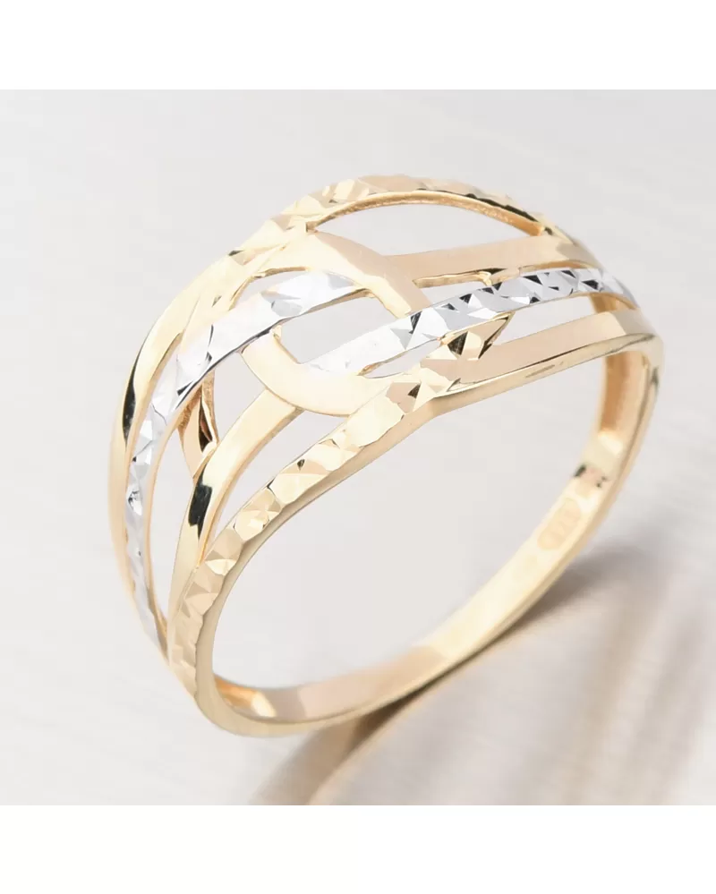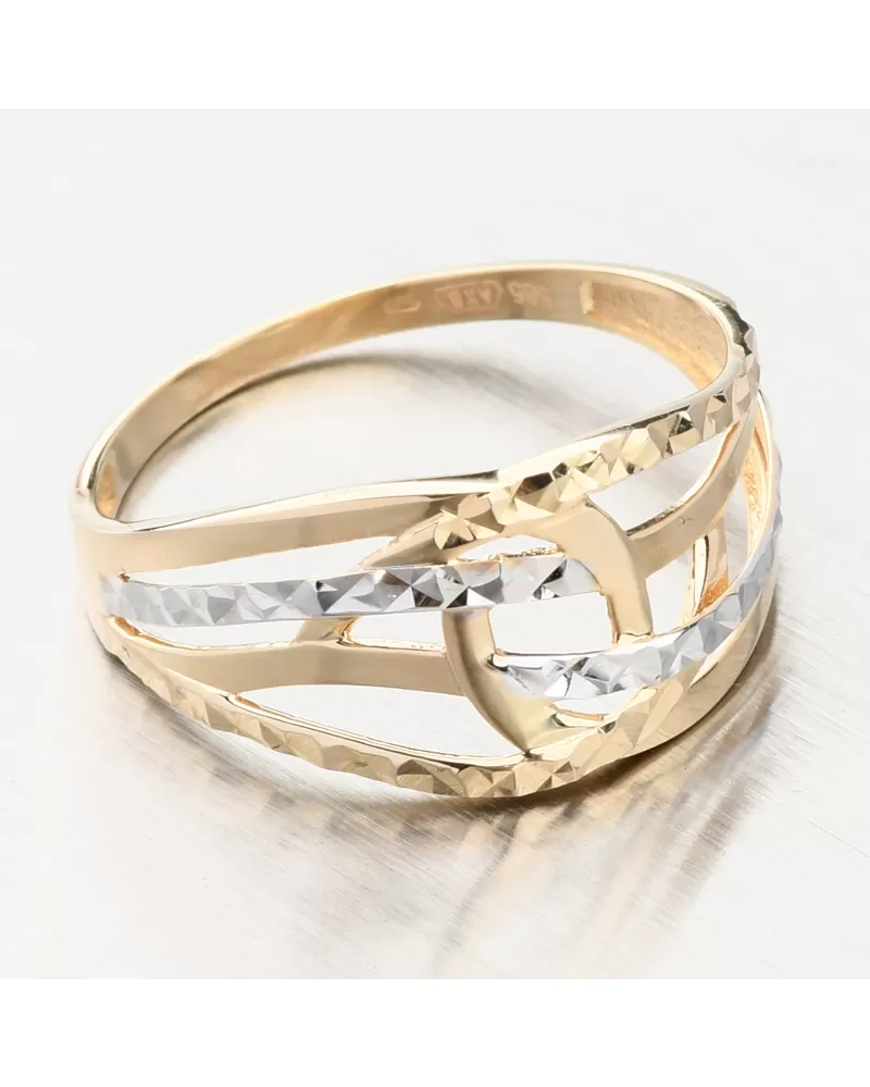 Velmi zajímavý a precizně zpracovaný zlatý dámský prsten. Prsten je složen z jednotlivých propletených linií, které se od sebe liší barvou zlata a povrchovou úpravou - gravírováním. Dvě linie jsou v bílé barvě zlata a poté jsou některé části zvýrazněny gravírováním. Gravírování je za pomocí diamantového hrotu a dodávají šperku maximální lesk a brilanci ze všech úhlů.