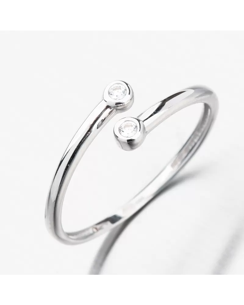 V jednoduchosti je krása, tento prsteň z bieleho zlata je toho dokonalým dôkazom. Ozdobou decentného prsteňa je rozdvojený prsteň, ktorý je zakončený trblietavým zirkónom. Zirkóny sú briliantovo vybrúsené, čo zaisťuje maximálnu brilanciu brúsených faziet, dokonale odráža svetlo a neuveriteľne sa leskne z každého pohľadu.