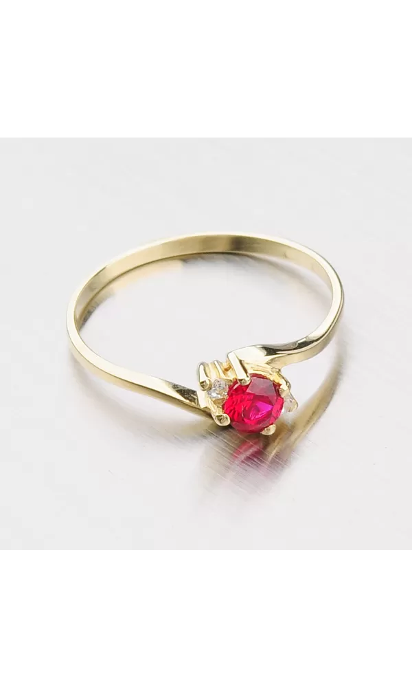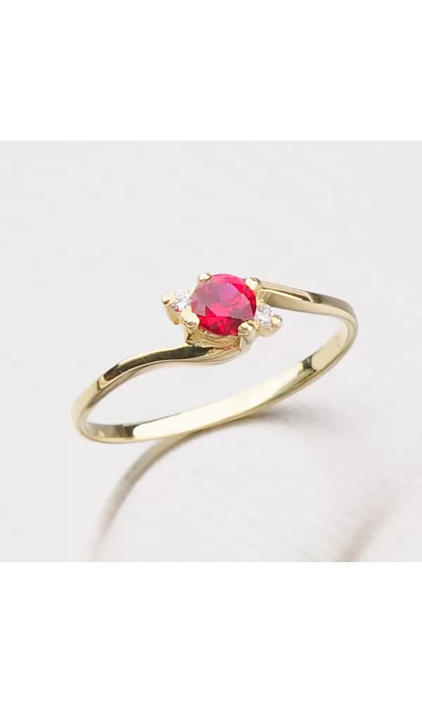 Zlatý prsteň vás prekvapí krásnym červeným syntetickým rubínu uprostred. Okolo syntetického rubínu sú nastavené biele zirkóny. Prsteň je vyrobený zo štrnástich -karátových zlatých 585/1000 v žltej farbe v lesklom povrchu. Oslniť s týmto luxusným dielom.
