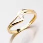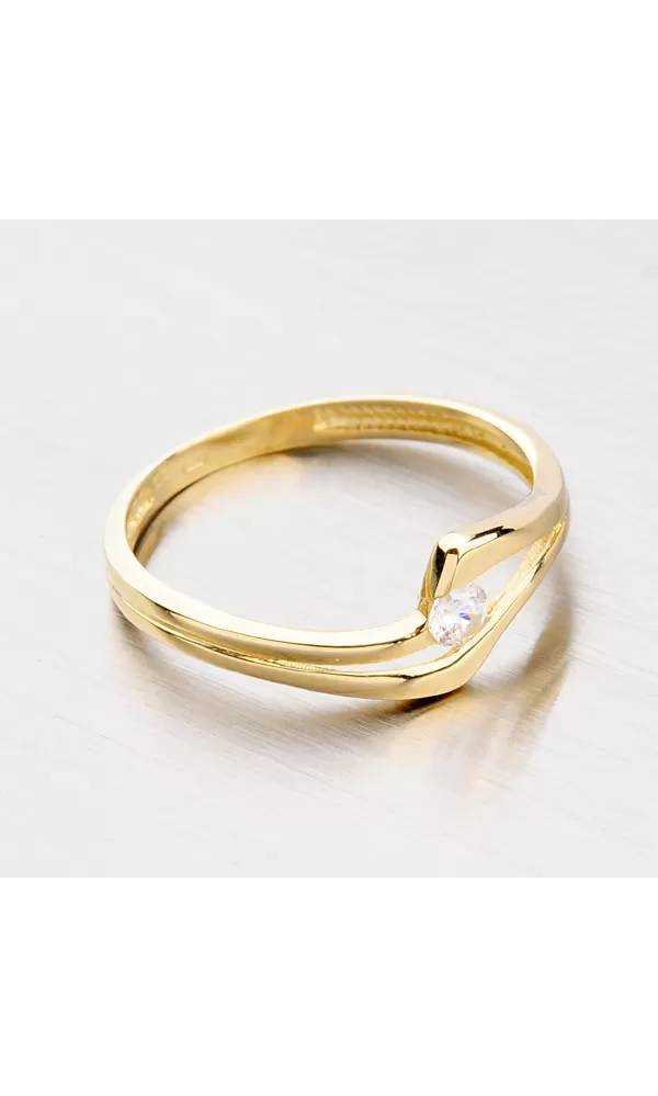 Elegantný prsteň s jedným žiarivým bielym zirkónom je obzvlášť zamilovaný do žien alebo dievčat, ktoré majú radi jemnejšie šperky. Prsteň je vyrobený zo žltej štrnástich -karátovej zlata 585/1000 v lesklom povrchu.