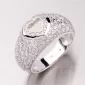 Exkluzívny dámsky prsteň je vyrobený z bieleho štrnásťkarátového zlata 585/1000 v lesklej povrchovej úprave. Prsteň je posádzaný drobnými bielymi… Celý popis