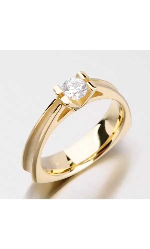 Tento prsteň vás zaručene zaujme svojím tvarom. Prsteň je ako celok vytvorený do pomyselného trojuholníka a to aj vrátane obrúčky. v bielej farbe.