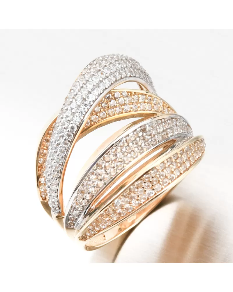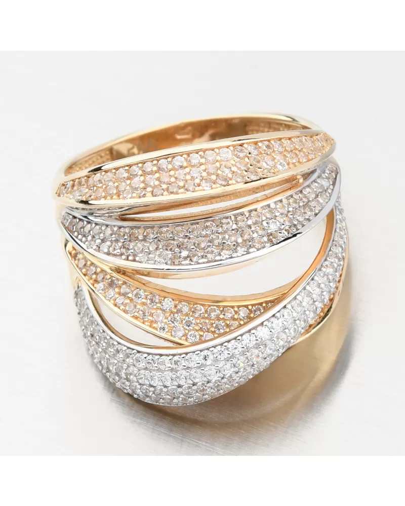 Žiarivý zlatý prsteň so zirkónmi - symbol ženskej elegancie a sebavedomia. Doplňte svoj štýl pútavými šperkami. Očarujúce, sebavedomé a neprehliadnuteľné. Tento luxusný prsteň je kombináciou žltého a bieleho zlata a je stelesnením ženskej elegancie a prirodzenej grácie. Precízne osadené kamene briliantového brusu vytvárajú oslnivú hru svetla, ktorá sa rozžiari pri každom pohybe ruky. Brilantný výbrus zaisťuje maximálnu brilanciu brúsených faziet, dokonale odráža svetlo a neuveriteľne svieti z každého uhla pohľadu.