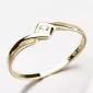 Tento krásny dámsky prsteň vyrobený zo žltého štrnástich karátového zlata s rýdzosťou 585/1000 v lesklej a matnej povrchovej úprave zaujme svojim symetrickým tvarom a krásnymi zirkónmi vybrúsenými do briliantového tvaru. Prsteň bol skontrolovaný puncovým úradom, ktorý overil jeho kvalitu a označil štátnym puncom pre danú rýdzosť.