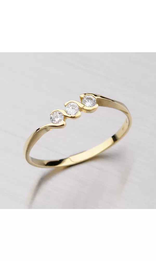 Dámsky prsteň so zirkónmi je vyrobený zo žltého štrnásťkarátového zlata 585/1000 v lesklej povrchovej úprave.