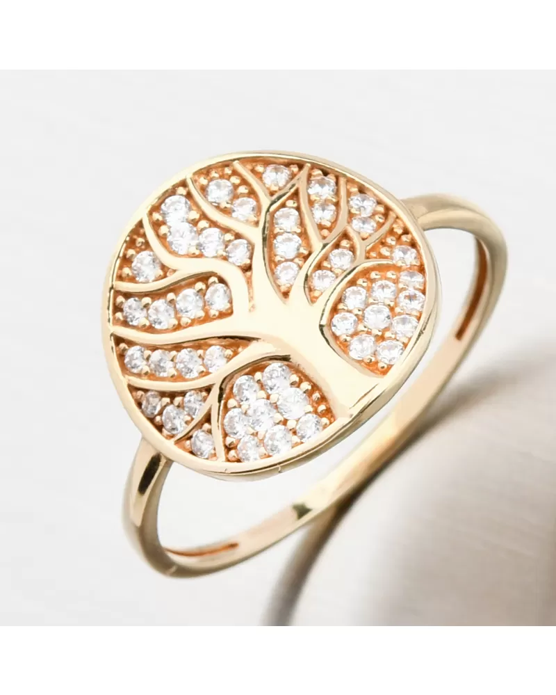 Zlatý prsteň so stromom života a zirkónmi 11R-371