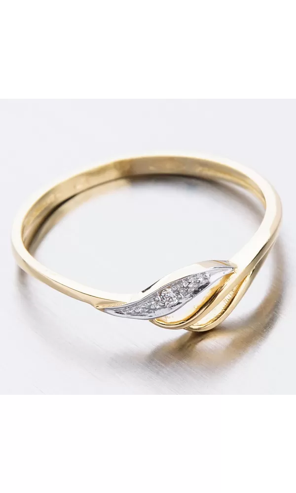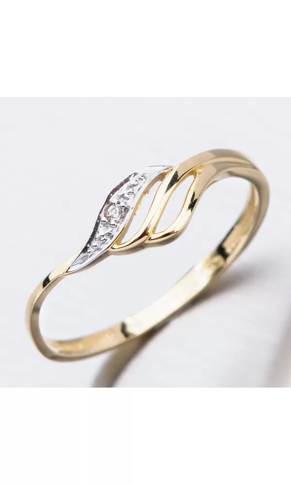 Jemný dámsky prsteň je zdobený vlnami leštenými až do vysokého lesku. Jedna z vĺn je zvýraznená bielym farbou zlata a zirkónov, ktoré sa presne vkladajú do zlata a nakrájajú sa na brilantné brúsenie. Prsteň je navrhnutý tak, aby mal pri nosení maximálne pohodlie. Prsteň prilepuje prst a nevyčnieva. Rám je vylepšený na chrbte