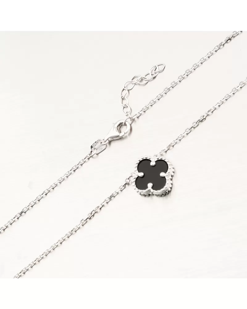 Čierna farba dodáva trojlístku mystický nádych, zatiaľ čo samotný motív symbolizuje šťastie, harmóniu a ochranu. Náhrdelník je ideálny pre ženu, ktorá miluje výrazné, no stále vkusné doplnky.