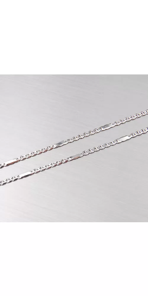 Jemná retiazka je vyrobená z bieleho štrnásťkarátového zlata 585/1000 v lesklej povrchovej úprave. Aby sme lesk znásobili, vložili sme v pravidelných rozostupoch plôšky leštené do vysokého lesku. Nádherná retiazka je vhodná na každodenné nosenie. Vzbudzujte pozornosť okolia. Retiazka má zapínanie na perový krúžok.